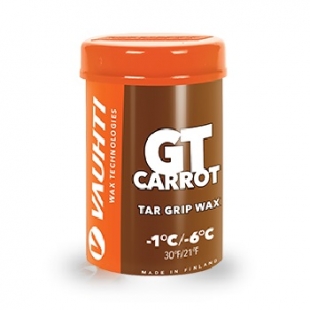 ЛЫЖНАЯ МАЗЬ VAUHTI GT CARROT, -1°С/-6°С Твердая смоляная мазь держания. Универсальная мазь держания для любителей на легкий мороз. На старом снегу работает до -12.