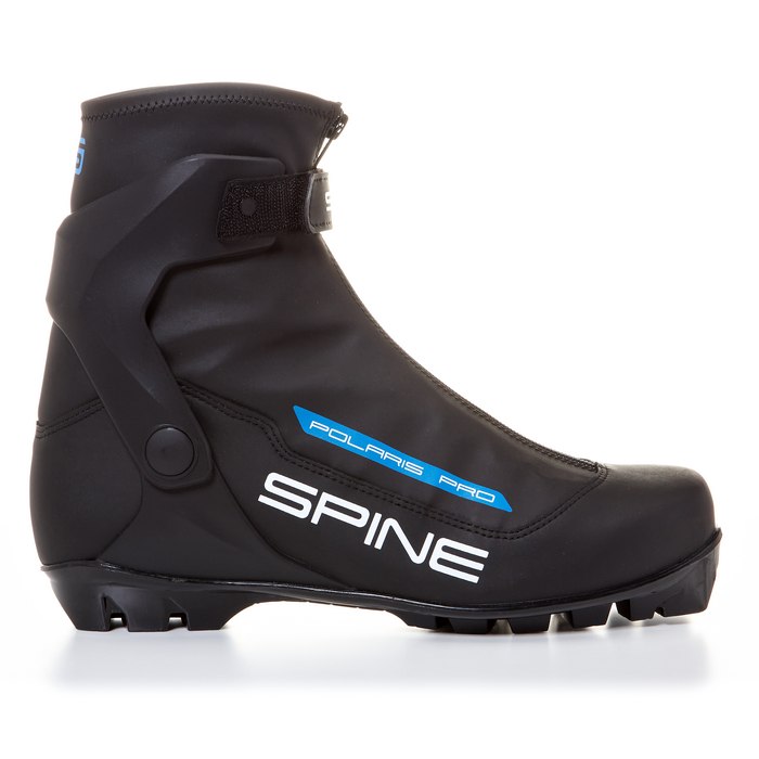- Spine Polaris Pro (385-23) – модель, в которой учтено всё, что нужно спортсмену: подошва подходит к современным креплениям вида NNN, герметичность достигается за счет «двойного ботинка» и эластичных материалов клапана (велькро), дополненных липучкой и молнией.