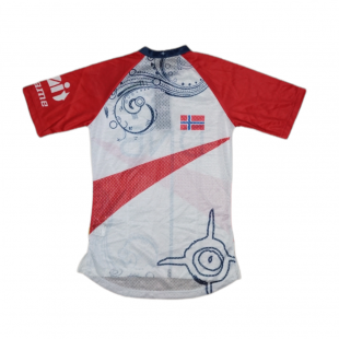 Из-за облегающего дизайна и применяемой ткани, футболка имеет хорошую терморегуляцию, когда жарко, влага быстро испаряется. А когда уже прохладно, футболка сохраняет естественное тепло тела. На груди расположена короткая молния, при жаре ее можно расстегнуть, а при более прохладной погоде застегнуть довольно высокий воротник до упора